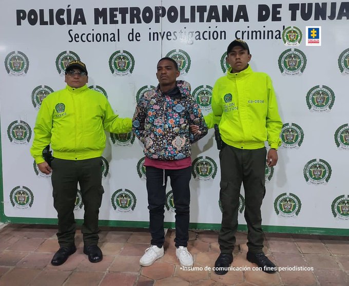 La policía Metropolitana de Tunja, a través de una rueda de prensa, informó sobre la captura de un hombre de ciudadanía extranjera, quien habría cometido el asesinato de de un hombre 58 años, y su hijo, de 18 años, quienes estaban en horas de la noche del pasado domingo 7 de mayo preparándose para terminar su jornada cuando el capturado, habría cegado sus vidas. Los hechos investigados ocurrieron el pasado 7 de mayo, en la plaza de mercado del