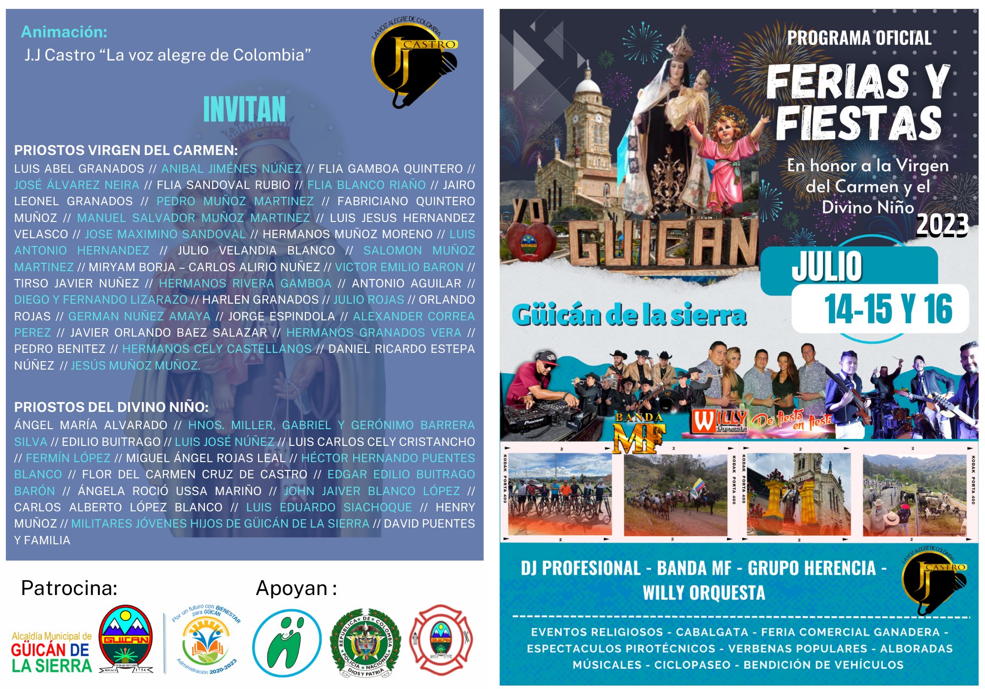 Este 14, 15 y 16 de julio serán la Ferias y Fiestas en Güicán de la Sierra. Estas festividades, como de costumbre se realizan en honor a la Virgen del Carmen y el Divino Niño. Dentro de la programación se encuentran actividades, tales como: Eventos religiosos, cabalgata, feria comercial y ganadera, espectáculos pirotécnicos, verbenas populares y alboradas musicales.
