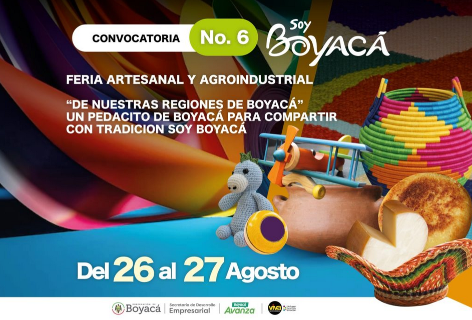 La marca ‘Soy Boyacá’ cerrará el 12 de agosto, la convocatoria para participar en la Feria Artesanal y Agroindustrial ‘De nuestras regiones de Boyacá’.
