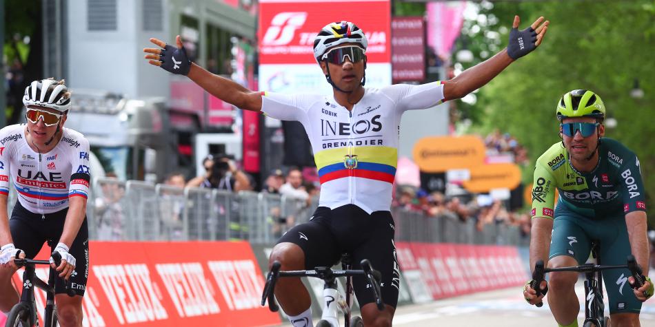 El pedalista suramericano del Ineos Grenadiers mantuvo la calma en el sprint, reaccionó al ataque de Pogacar y logró remontar de forma convincente al esloveno. De este modo, ganó una etapa en la Corsa Rosa por segunda vez en su carrera y vestirá el primer maillot rosa.