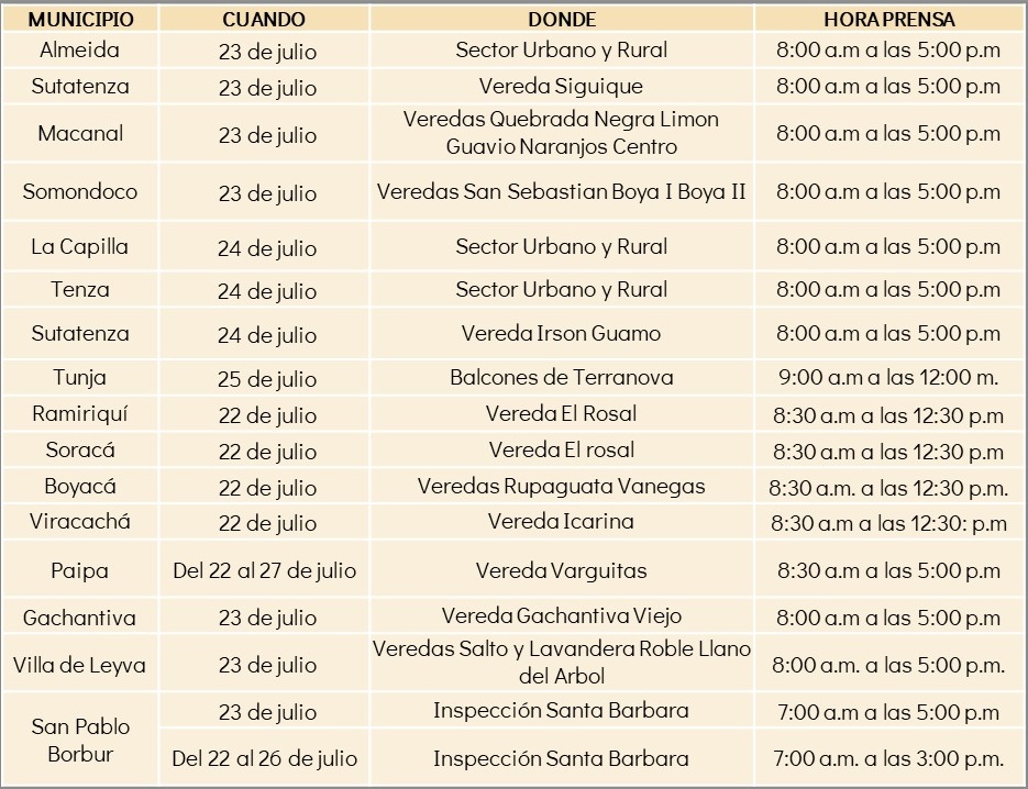 La Empresa de Energía de Boyacá (EBSA) informó que 16 municipios boyacenses tendrán cortes de luz durante la semana del 22 al 26 de julio.