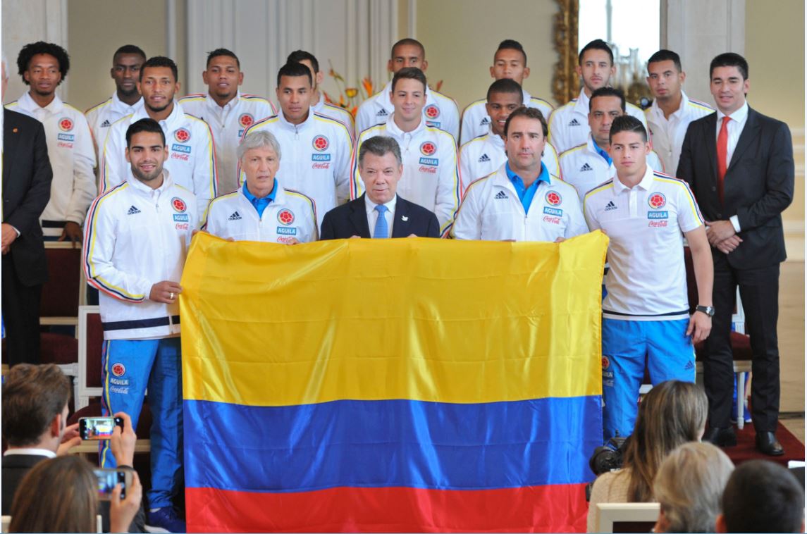 El Presidente Juan Manuel Santos entregó este viernes el tricolor nacional a la Selección de Fútbol que participará en la Copa América, que se disputa en Chile desde el próximo 11 de junio, y en el cual deseó nuevos éxitos al equipo colombiano.