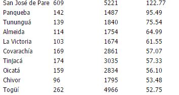 En total la MOE llamó la atención hacia 93 municipios que tienen al menos el doble de la tasa promedio nacional de inscripción de cédulas, diez de ellos en Boyacá.
