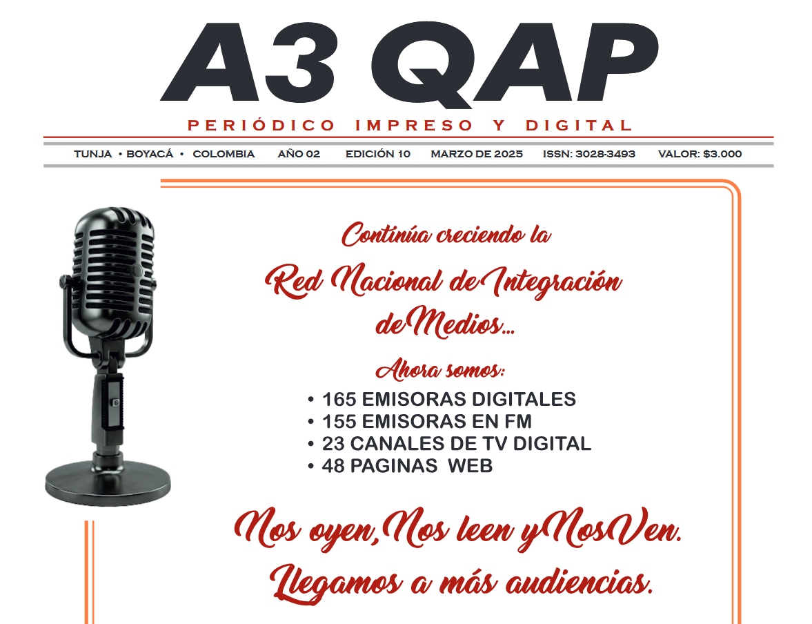 La más reciente edición del periódico A3 QAP ya está en circulación y contará con las noticias y análisis más relevantes de la actualidad boyacense y colombiana.