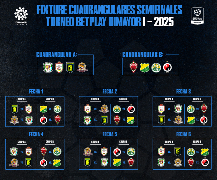 Recientemente, la Dimayor publicó el fixture de los cuadrangulares semifinales del Torneo de Ascenso 2025-I, en las que Patriotas Boyacá lidera el Grupo B y tendrá que enfrentar a Cúcuta Deportivo, Huila y Real Cundinamarca en seis jornadas.
