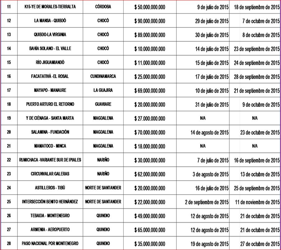 Listado de proyectos de obras públicas que el Invías sacará a licitación: