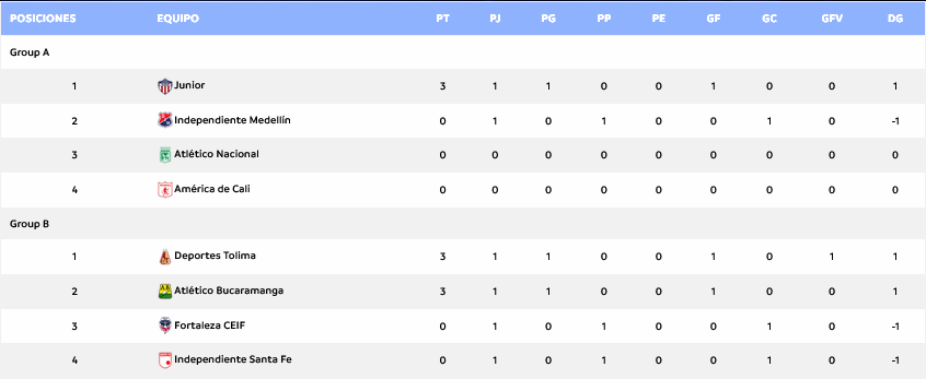 Con estos resultados y considerando que Tolima derrotó a Fortaleza, la tabla del grupo B queda con el ‘pijao’ en la cima, seguido por Bucaramanga, Fortaleza y Santa Fe.