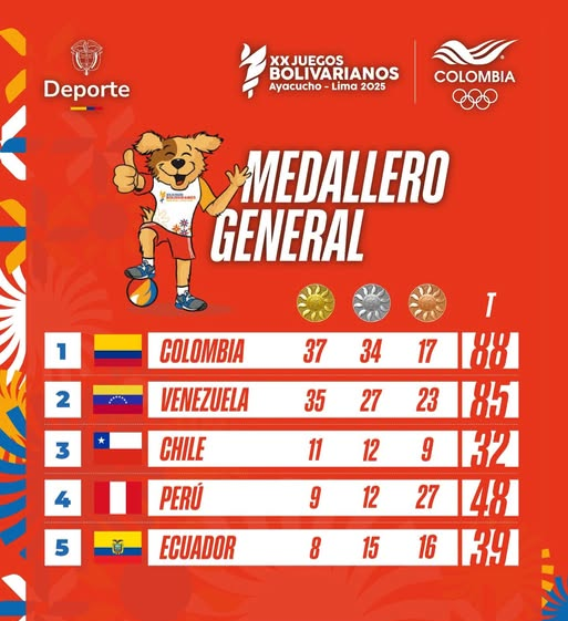Colombia sigue imparable y mantiene el liderato en los Bolivarianos Ayacucho–Lima 2025