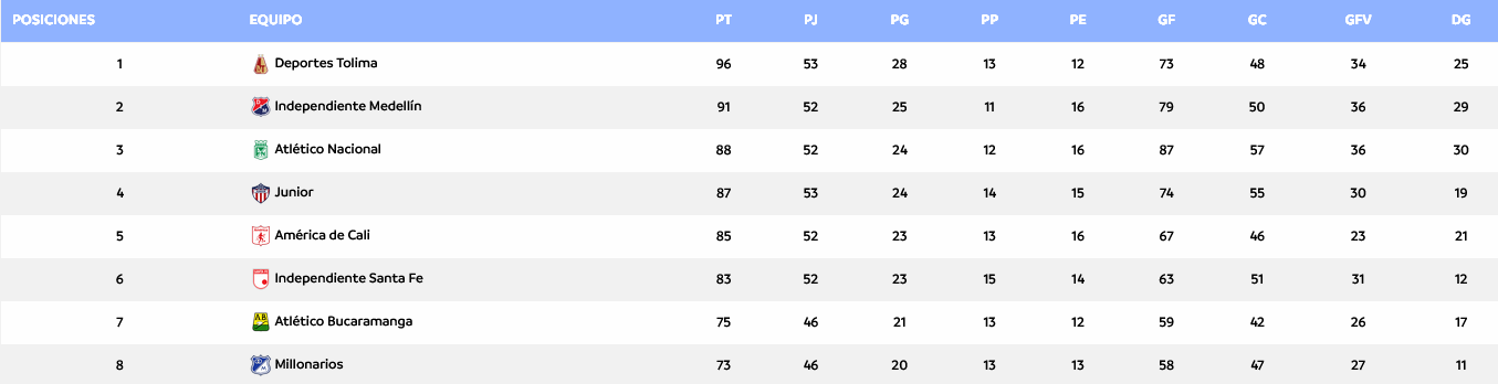 Gracias a la victoria 3-0 de Junior sobre Tolima en Barranquilla, en el partido de ida de la final de la Liga BetPlay 2025-II, el equipo atlanticense subió tres posiciones en la tabla de reclasificación, que mide el rendimiento anual de los clubes y otorga cupos a la Copa Libertadores.
