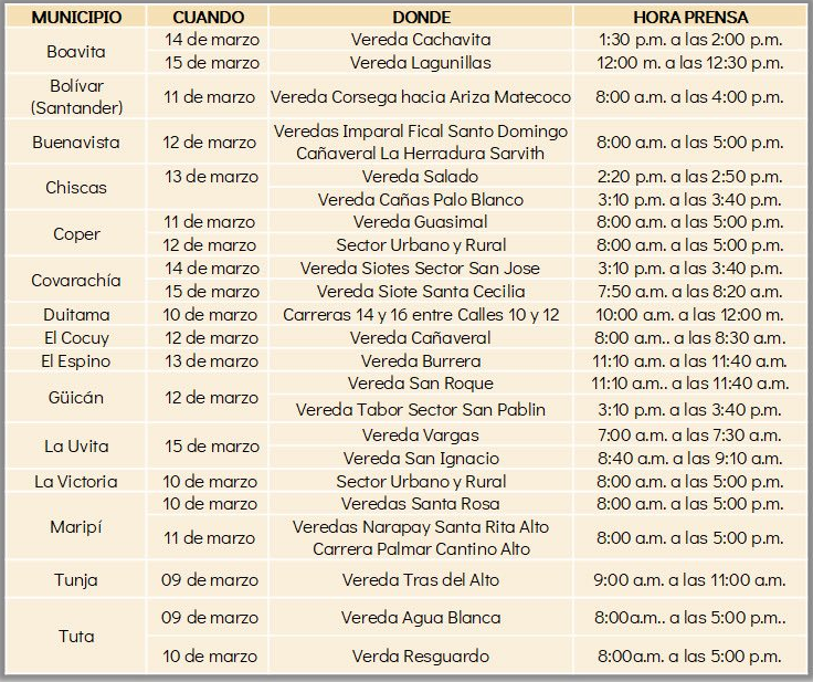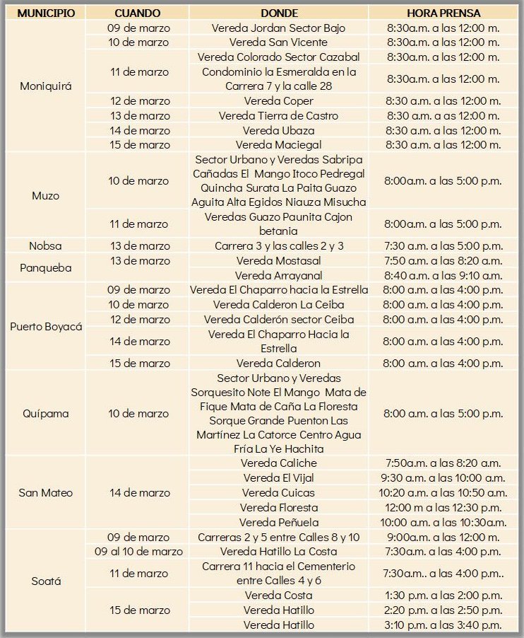 La Empresa de Energía de Boyacá (EBSA) anunció que del 9 al 15 de marzo se realizarán cortes de luz en 22 municipios del departamento por mantenimientos en las redes eléctricas.