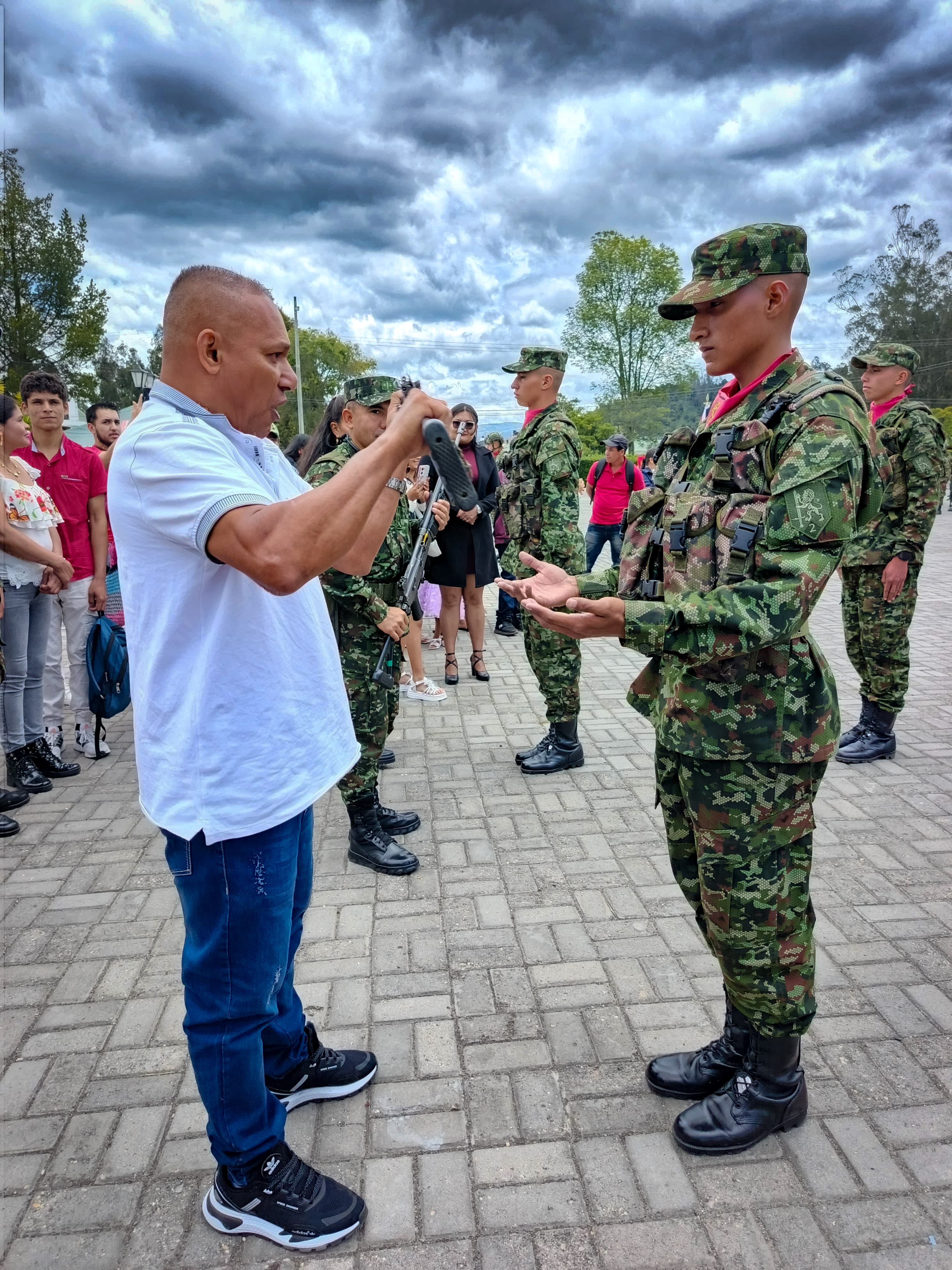 El personal uniformado participó en una ceremonia militar cargada de simbolismo, disciplina y compromiso institucional. El evento fue presidido por los señores comandantes de los batallónes de Infanteria N° Sucre 2 , N° 1 General Simón Bolivar y de Apoyo y Sostenimiento para el Combate N° 1 Cacique Tundama, y junto con oficiales y suboficiales, quienes acompañaron este importante momento en la vida militar de los soldados.