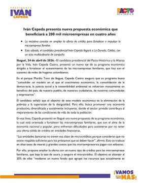 Finalmente, el senador reiteró que este plan de microcrédito busca abrir nuevas oportunidades para miles de familias, promoviendo un modelo de desarrollo más incluyente, sostenible y equitativo, sostenible y equitativo en todo el territorio colombiano.
