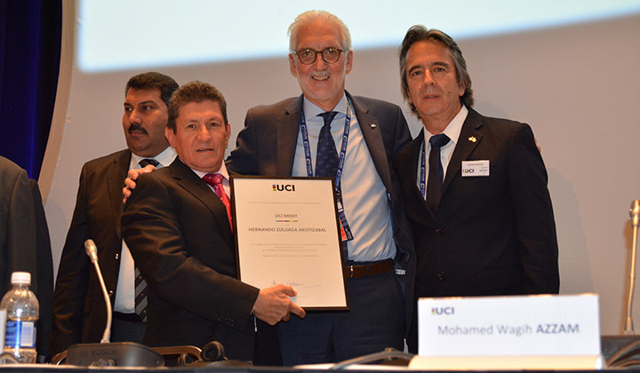 Dirigente colombiano es homenajeado en Congreso Mundial de la UCI