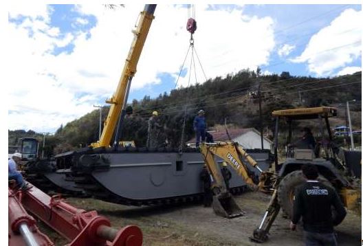 Actualmente, la CAR recibió una excavadora hidráulica sobre pontones anfibios de referencia 350, la cual ya fue ensamblada y puesta en funcionamiento en la Laguna de Fúquene con el objetivo de adelantar labores de extracción de sedimentos y perfilado de taludes.