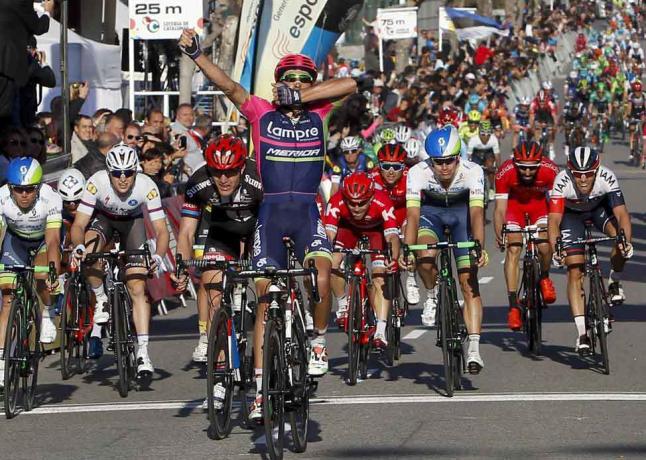 Davide Cimolai (Lampre-Merida) ha ganado la sexta etapa de la Volta a Catalunya, con final en Vilanova i la Geltrú. Nairo Quintana (Movistar Team) sigue siendo el líder tras una etapa en la que once corredores han protagonizado la fuga, controlada por el equipo del líder, primero, y por los equipos de los esprinters, después.