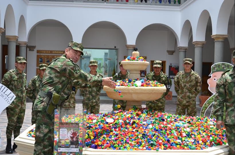 Con el propósito de apoyar a los niños de la Fundación Sanar y unir esfuerzos a la campaña que realiza el Ejército Nacional, la Primera Brigada adelantó la recolección de más de 200 kilos de tapas plásticas.